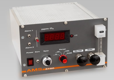 該微量氧分析儀 AMS3160 基于電化學原理。該型號分析儀是一款高精度、長壽命測量技術、微處理控制的電子分析儀。型號AMS3160是通用性分析儀,最低量程可以做到 0 ... 10 ppm O2,最高0-100%Vol O2。可多量程自動切換技術。